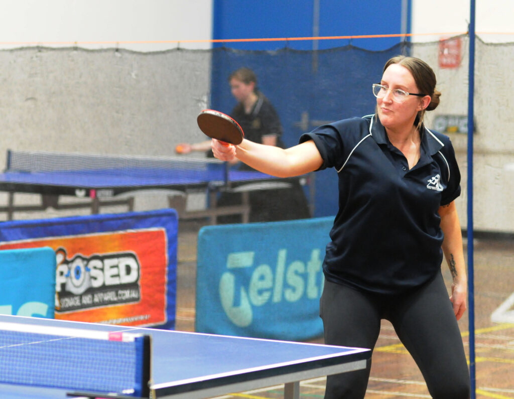 Carmichael is in good form as she prepares for the 2025 National Veterans Championships to be played in Brisbane next week where she will represent Victoria in the Ladies Over 30 team. Carmichael and opposing number one Reece Kurrle fought out an entertaining singles match as they seem to do each time they play, Kurrle possesses a powerful forehand and consistent back hand and Carmichael was forced to defend well winning 11-5 11-9 2-11 11-9.