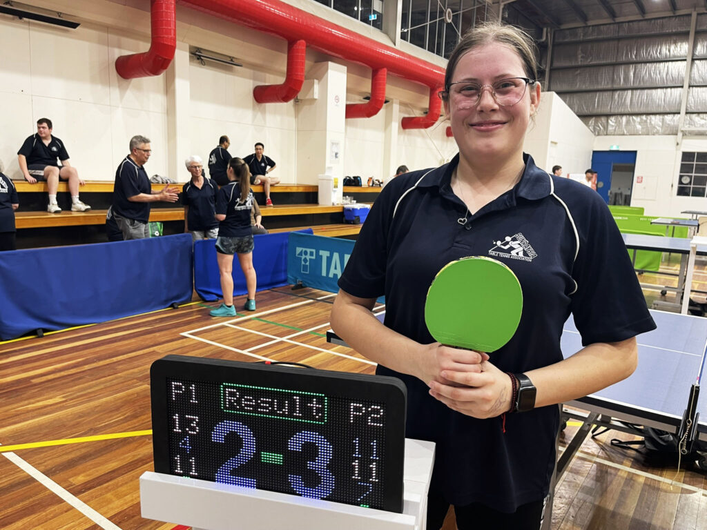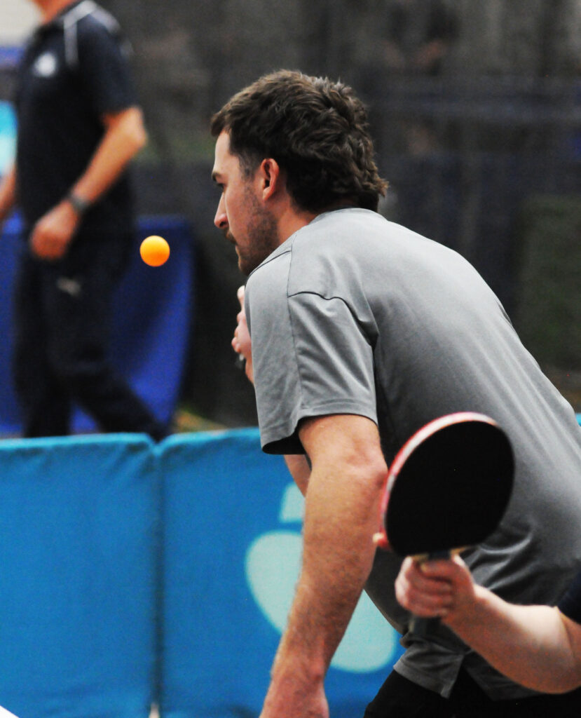 Sam took to the table knowing victory would get her team to that grand final while Exposed’s Steve knew victory was the only option to allow his team to continue their season. Teammates watched on closely and the first three games were point for point with many long rallies; Steve was able to take two of these games while Sam won the second. All three games were decided by a margin of two points; Steve had won 32 points while Sam had grabbed 30.