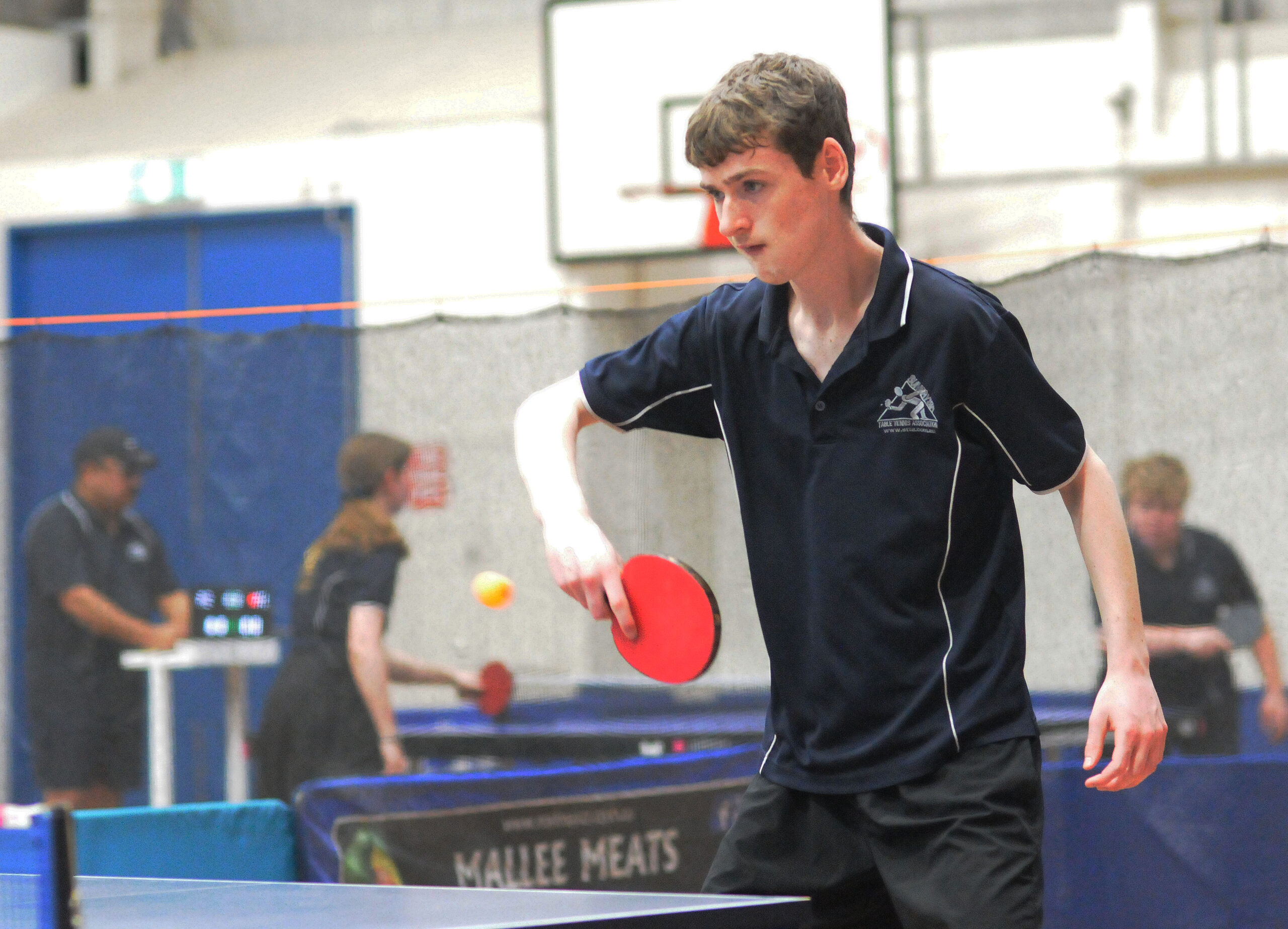 The first Doubles was very tight, with Weightman’s, Tom and Eddy, taking a two game lead in an exciting tussle. Mallee’s Yen and Nathan, then put together three mighty sets to turn the tables and pinch the win. (8/11, 7/11, 11/6, 11/9, 11/4).